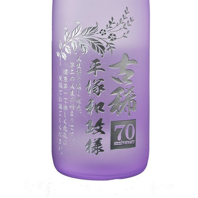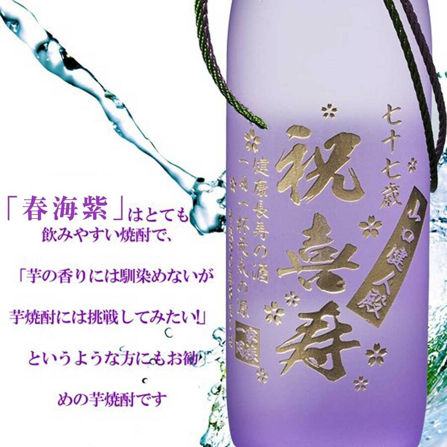 綺麗な紫のカラーのボトルが焼酎 喜寿 米寿 卒寿祝のシンボルカラーにおすすめです スッキリした味わいでほのかな甘みのプレミア焼酎と 人気の有田焼中も豪華なゴールド仕上げのお祝いカラーの紫セットです! ★